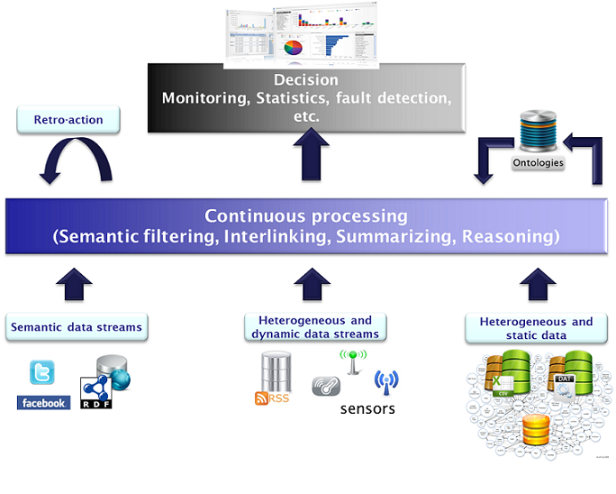 In most parts of the world, fast growing urbanization has faced several challenges throughout the last decades. Achieving a sustainable, environment-friendly and highly operating cities for a better quality of life requires innovative solutions brought by cutting edge technology. Creative ways of thinking have opened a brand new world of possibilities such as smart grids, smarter buildings and smart transportation systems. Most of these systems exploit sensor networks, an important component of the Internet Of Things, forcing to provide spatio-temporal processing that shares some characteristics with Big Data ecosystems. Indeed processing streaming sensor data requires technologies to face the high volume of data and the velocity at which these data ara coming into the system. Considering these challenges, WAVES provides real-time platform for processing sensor data in general, where it takes advantage of the flexibility and depth afforded by Semantic Web technologies. The primary use case is to deal with smart water network management and detect in real-time anoamlies based on reasoning capabilities. With its abstract leved design, it can cover other various domains where sensor networks are exploited such as traffic control, power consumption and e-Commerce. The following generic architecture of WAVES depicts the main different components to process structured and unstructured streaming sensor data on the fly. The key idea is to develop a comprehensive generic software platform that allows the management of large volumes of data streams. The platform has the ability to collect data streams from various sources in order to create new insights and knowledge for users accessed through innovative information and following some processing steps (cleaning, pre-processing, interlinking, filtering, summary and visualization).